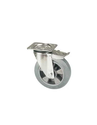 EGA 075/GLDP Otočné kolo s šedou pryžovou obručí a brzdou