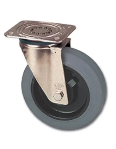 - vidlice z pozinkovaného plechu - dvě řady kuliček v otoči - otočné kolo - kolo s polyamidovým diskem a šedou pryžovou obručí - uložení kola v nerezovém jehlovém ložisku - tvrdost 65 ShA - odolné teplotě -10°C až +60°C Výborná kola pro: potraviny, nemocnice, chemické prostředí