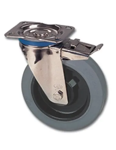 NHX 200/GXD Otočné kolo s šedou gumovou obručí nerezové vidlici s brzdou