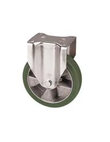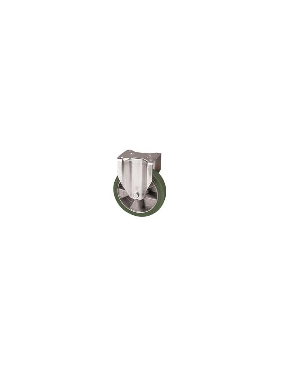 - vidlice z pozinkovaného ocelového plechu síly 2 až 3mm - pevné kolo ve vidlici - tvarované kolo z hliníkové slitiny se zelenou měkkou polyuretanovou obručí - 70 Sh.A - uložení kola v kuličkových ložiskách - odolné teplotě -20°C až +60°C