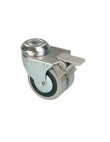EGA 2x 075/QLDP Otočné dvojkolo s šedou pryžovou obručí s otvorem a brzdou