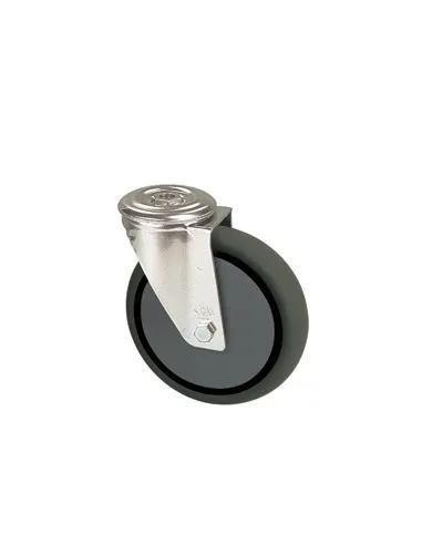 - vidlice z nerezového plechu - dvě řady nerezových kuliček v otoči - otočné kolo s otvorem - kolo s polypropylenovým diskem a šedou syntetickou pryžovou obručí - tvrdost obruče - 90Sh.A - protivláknové krytky - plastové proti namotávání nití - uložení kola v jehlovém ložisku - odolné chemickému prostředí
