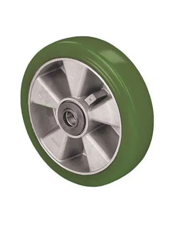 - tvarované kolo z hliníkové slitiny se zelenou měkkou polyuretanovou obručí- 70 Sh.A