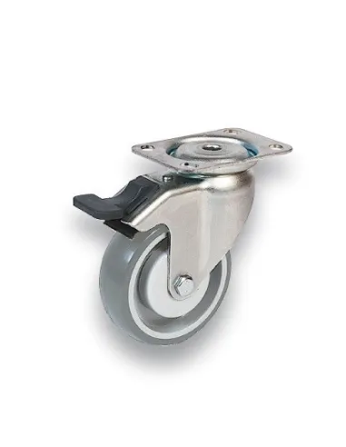 PUJm - V080/GLDP Otočné kolo s šedou polyuretanovou obručí s brzdou
